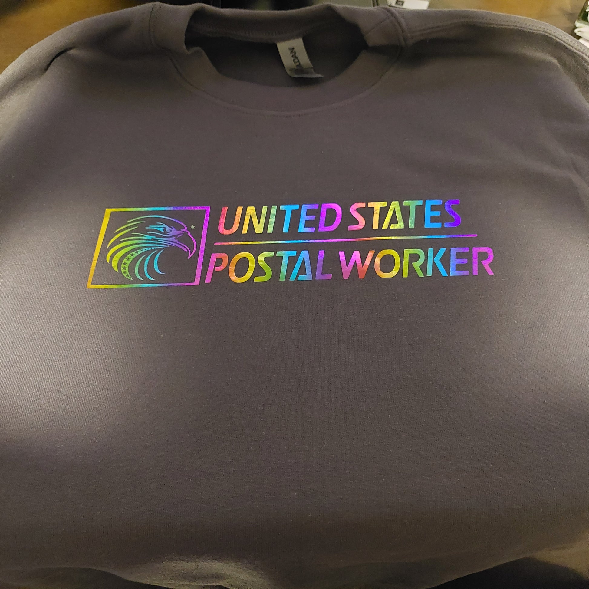 USPS Metallic shirt with USPS Logo on the back. Choose from Short Sleeve, long sleeve and sweatshirt.