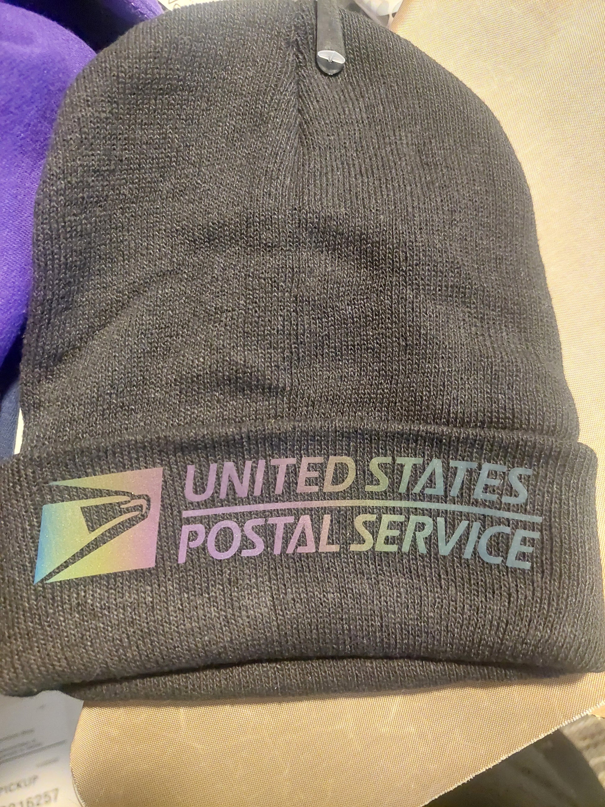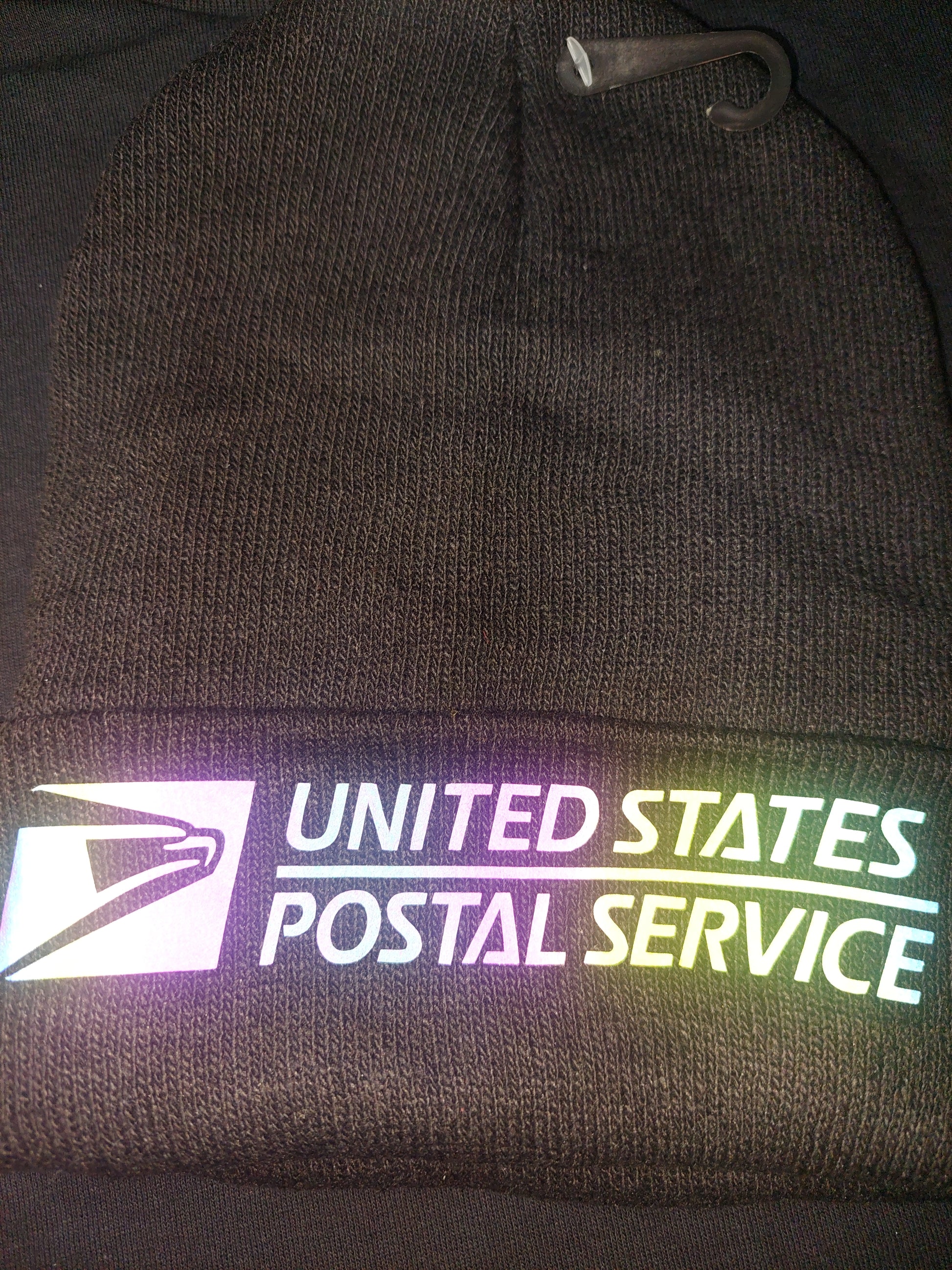 USPS beanie hat with reflective design.